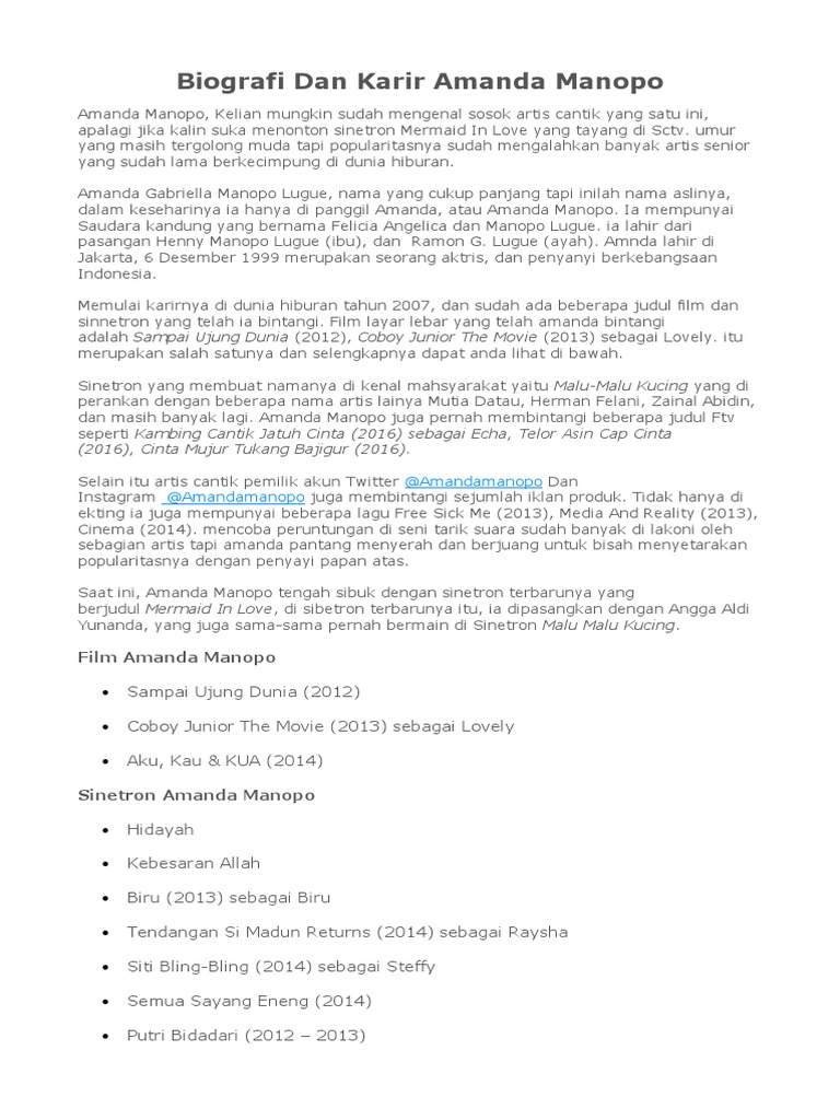Nomor Asli Amanda Manopo : Playtube Pk Ultimate Video Sharing Website - We did not find results for:. We did not find results for: Check spelling or type a new query. Maybe you would like to learn more about one of these?